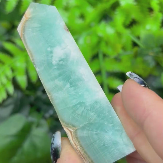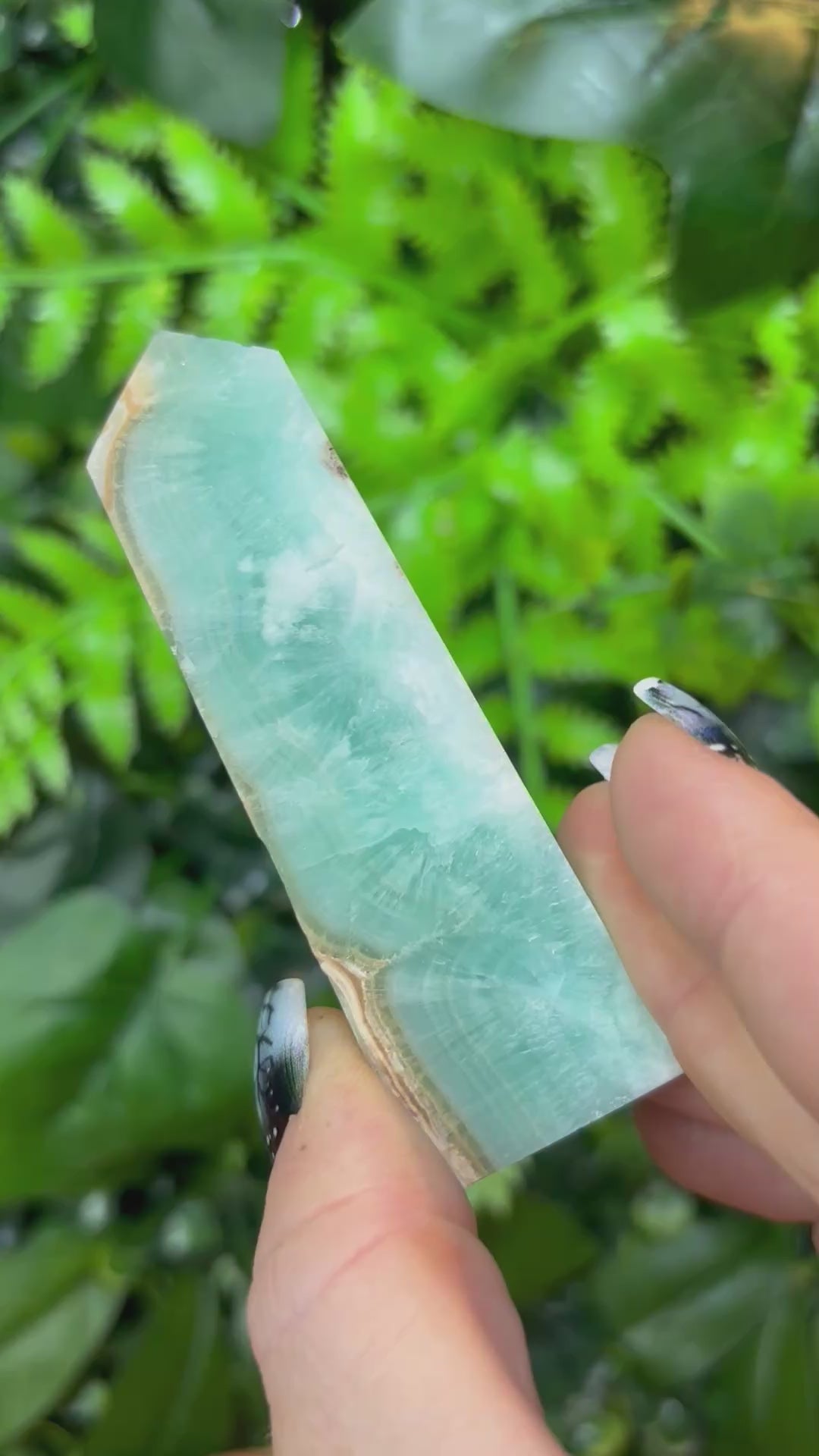 Blue aragonite is highly regarded in metaphysical practices for its strong association with emotional balance, calm communication, and spiritual connection. It is a soothing, nurturing stone that encourages patience, self-expression, and the release of emotional pain and stress.
