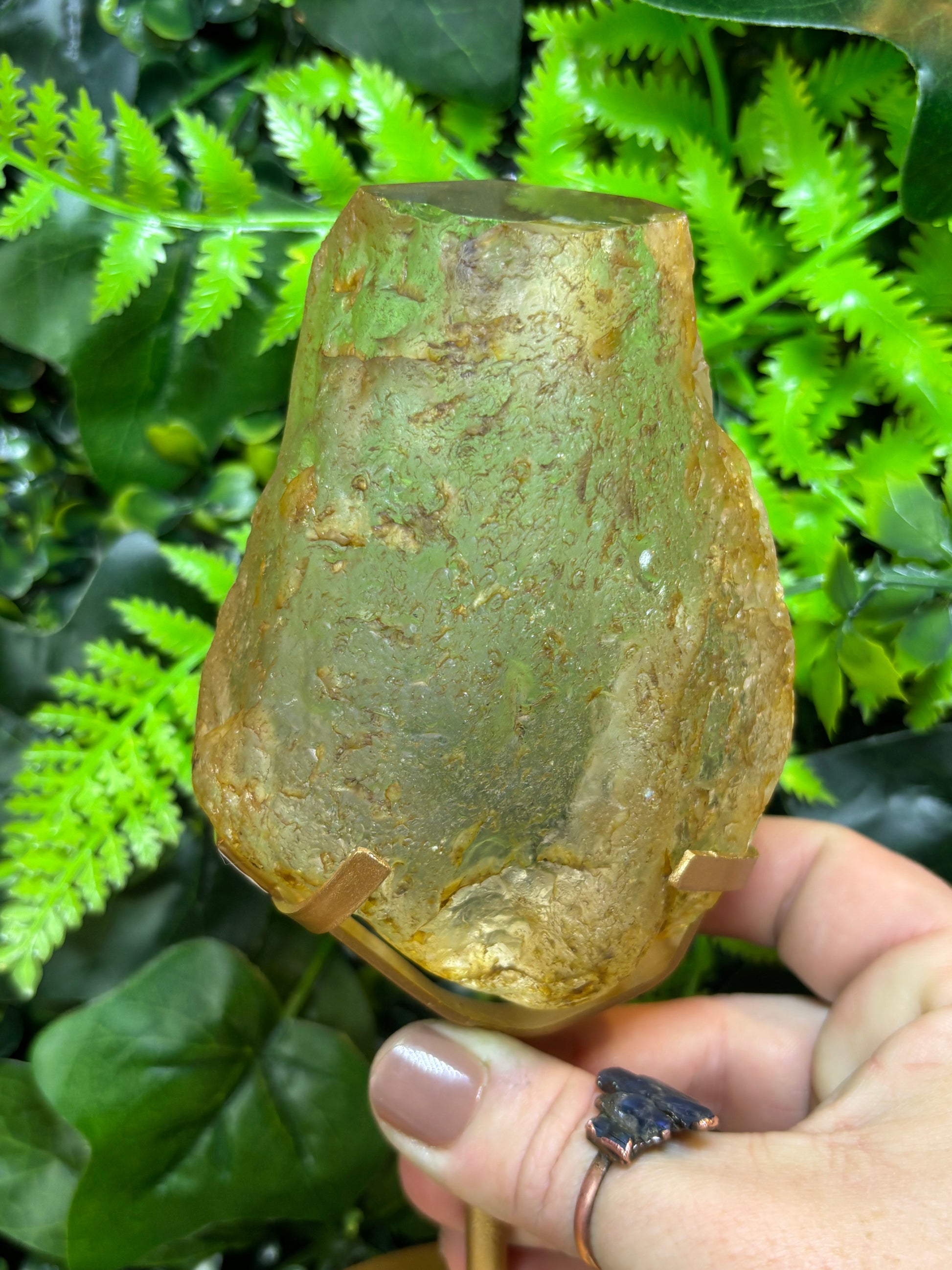 Part raw Golden Healer free form on custom stand