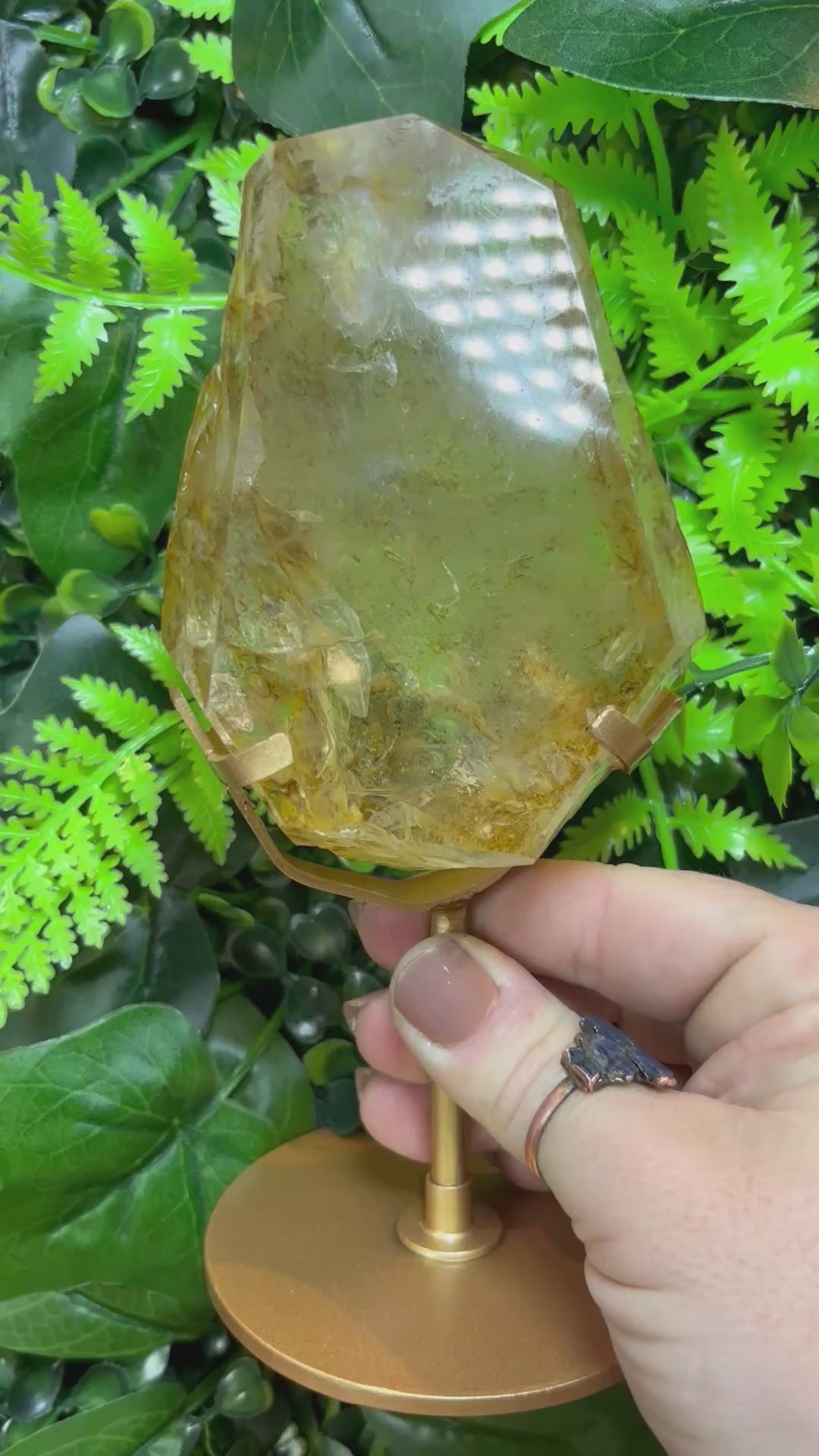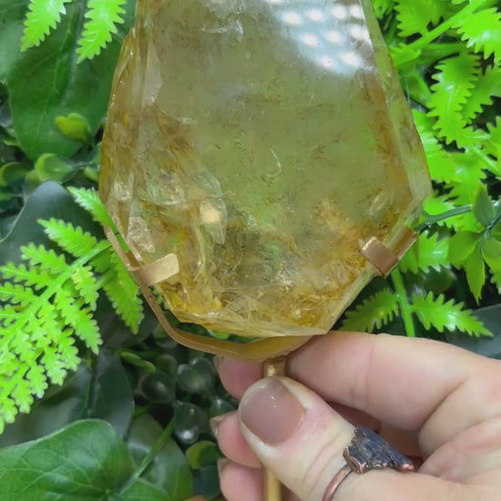 Amazing parr raw Golden Healer Quartz free form on a custom made gold stand.