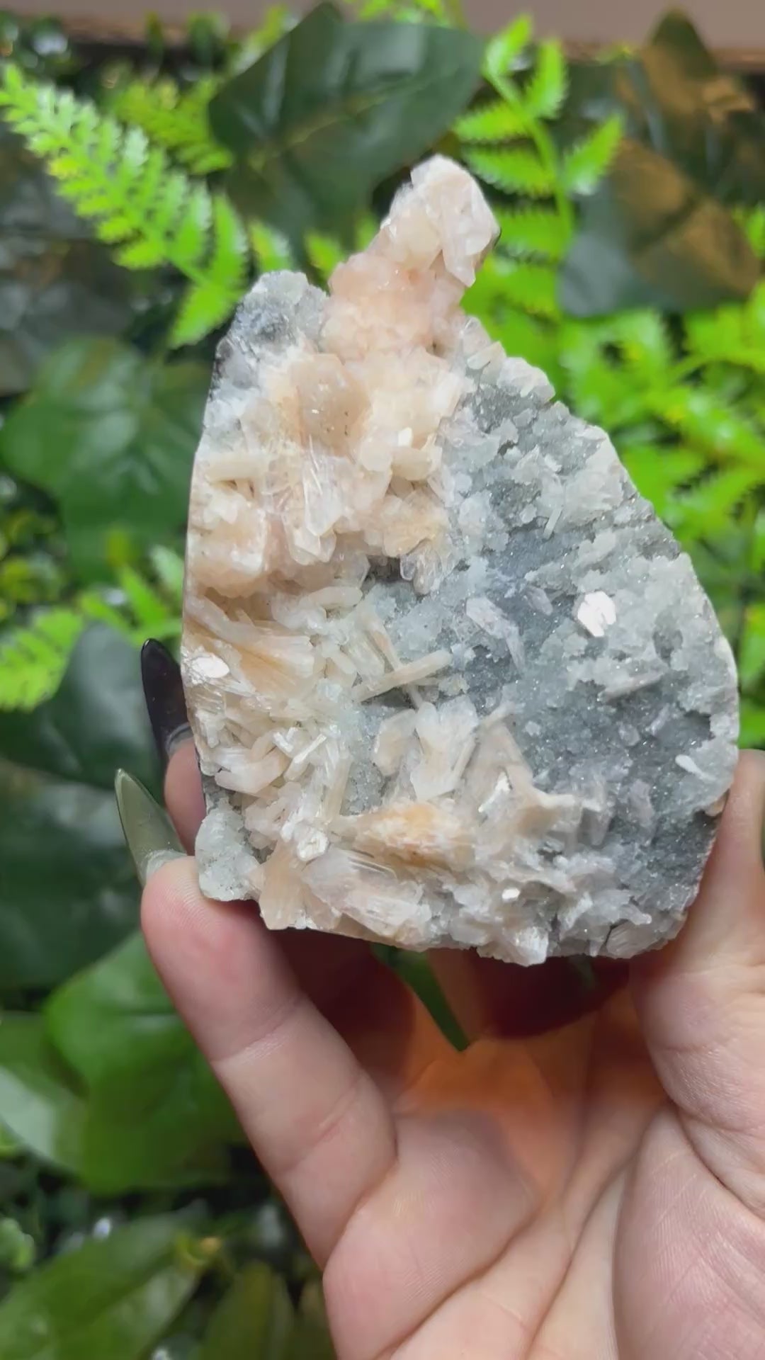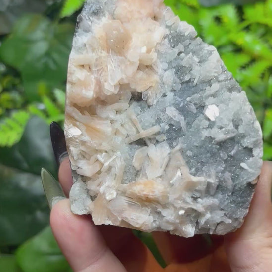 Peach Stilbite and druzy Chalcedony freeform - India